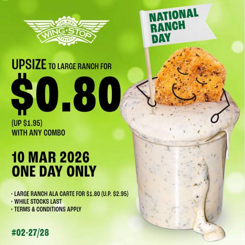 Ranch lovers, this one’s for you. Go BIG on Ranch. Upsize to a Large Ranch for just $0.80* It’s Ranch Day, let’s pour it on!