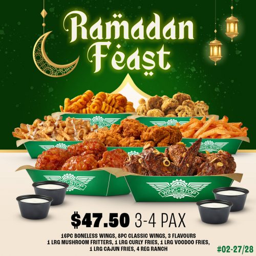 Gather the fam this Ramadan and break fast with a flavourful feast. Enjoy the Ramadan Feast at $47.50 (serves 3–4), packed with wings, fries and more. Available 19 Feb – 20 Mar 2026.